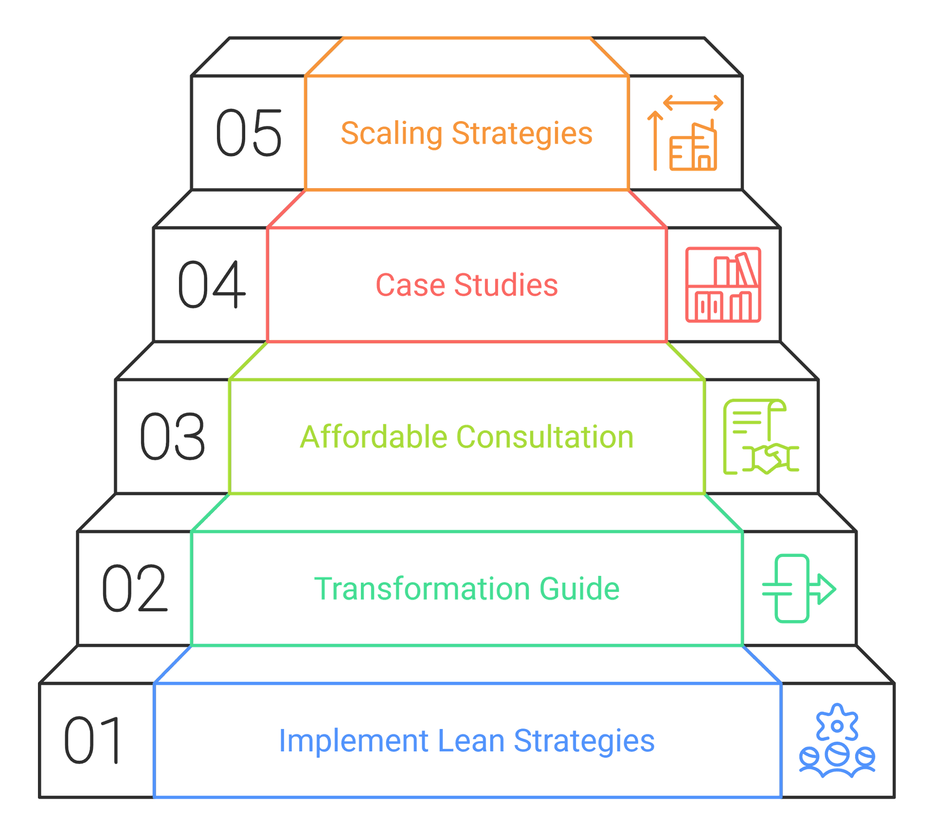 Unlocking your manufacturing business's true potential is within reach. With Business Growth Consultation that leverages Lean Manufacturing Strategies, you can achieve remarkable Manufacturing Business Growth while significantly enhancing Operational Efficiency and driving Manufacturing Transformation. Our comprehensive approach—incorporating Lean Process Improvement, Manufacturing Efficiency Consulting, Industrial Lean Management, Cost Reduction Strategies, and Production Optimization—provides you with a step-by-step guide to manufacturing business transformation that is both affordable and effective.